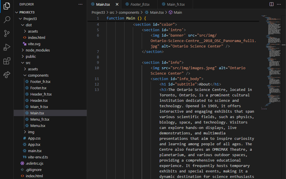 A website showcasing all of the expedition that the Ontario Science Center has to offer. This project was made for my SPAs & Mobile Apps class. We learned the basics of react in this class.